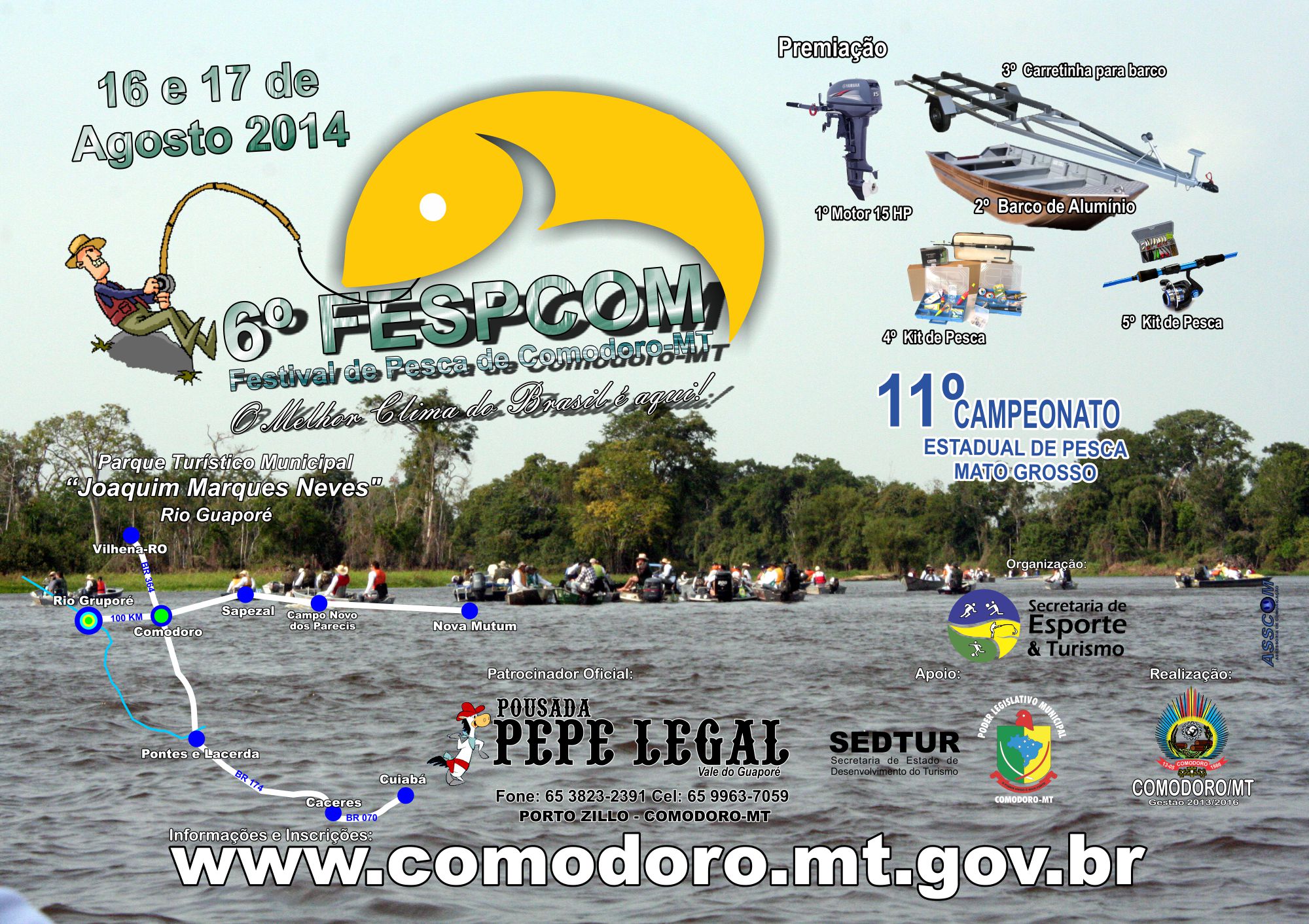 Pescadores, preparem os molinetes, as varas, linhas, anzóis e iscas. Nos dias 16 a 17 de Agosto próximo acontecerá no Parque Turístico Municipal, nas margens do Rio Guaporé, o 6º Festival de Pesca Esportiva Embarcada. realizado em parceria pela prefeitura e Câmara Municipal de Comodoro, organizado pela secretaria Municipal de Esporte e Turismo.