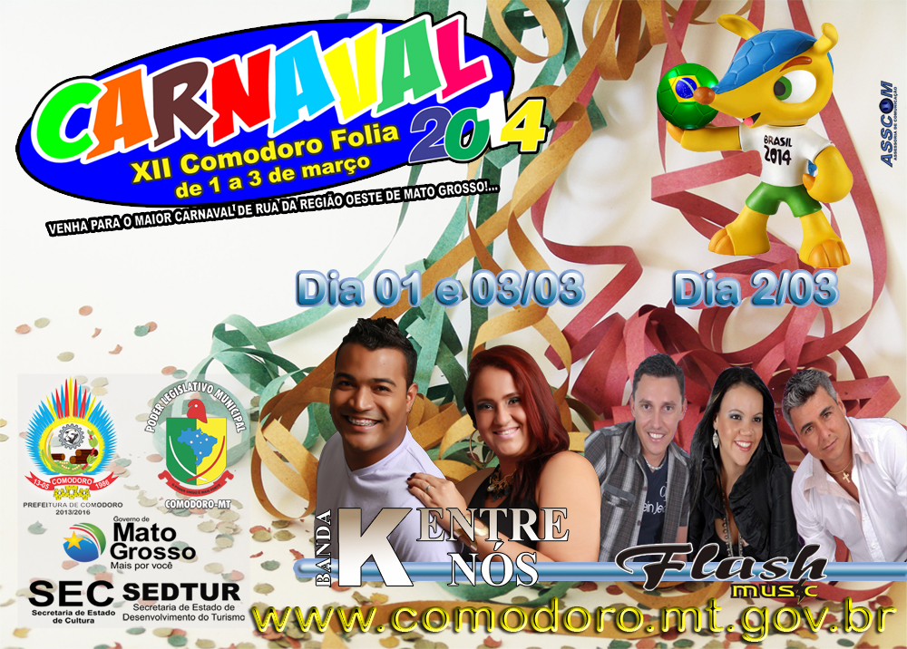A Prefeitura Municipal de Comodoro por meio da secretaria de Educação e Cultura convida a todos os Comodorenses e municípios vizinhos para participar do XII Comodoro Folia 2014, Carnaval de Rua.