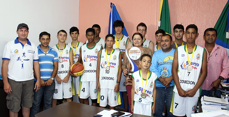 Atletas que representarão Comodoro na modalidade de Basquetebol nos Jogos Estaduais Estudantis, realizado em Cáceres, visitaram a Prefeita Marlise Moraes na tarde desta quinta-feira, 27.