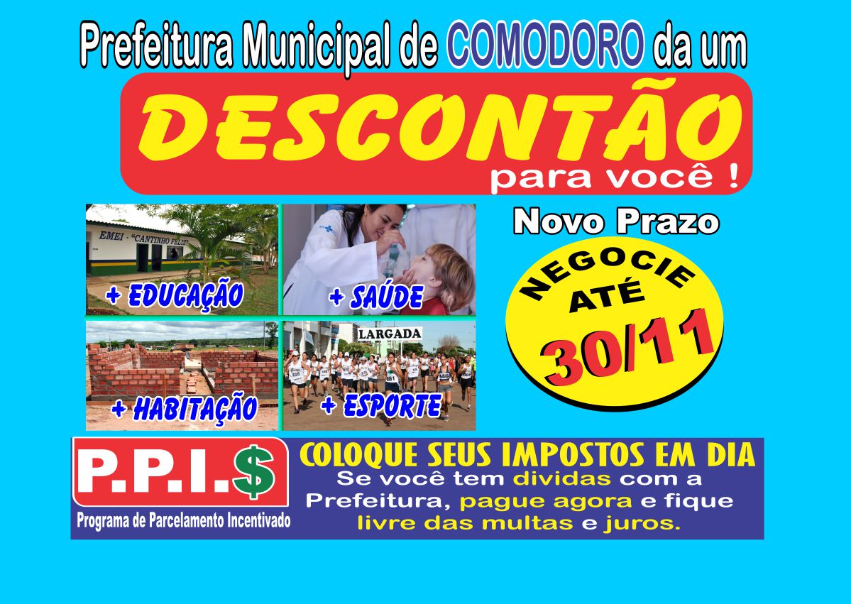 Foi estendido até o dia 30 de Novembro de 2014, o prazo para os contribuintes em débitos com a Prefeitura de Comodoro aderir ao Programa de Parcelamento Incentivado (PPI).